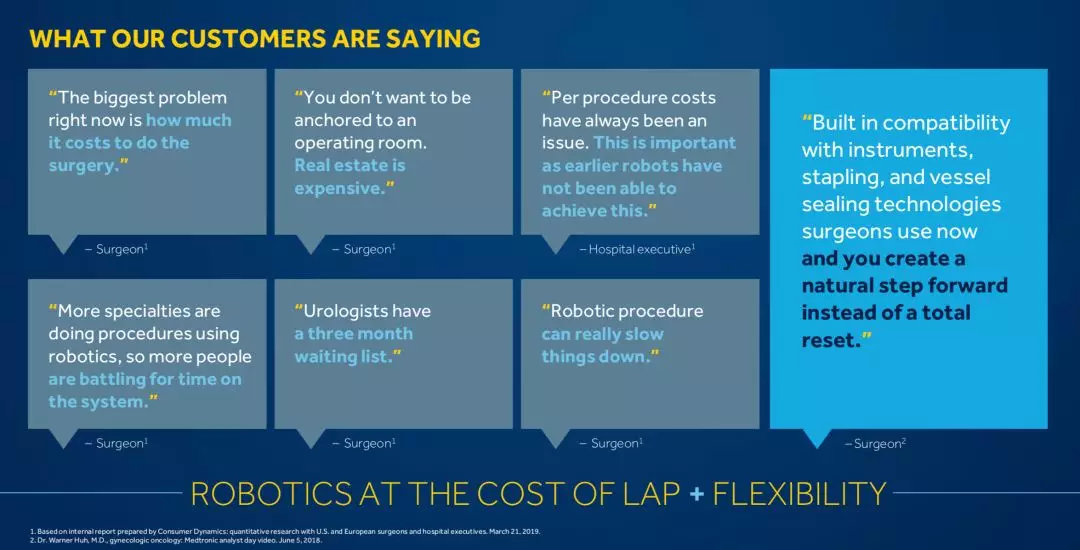 美敦力也表示,自己的手术机器人除了本身就是高价值的产品之外,还能完美的结合自家的耗材余内植入物;结合视觉和导航技术,能积累海量的数据,为美敦力的医疗器械研发注入新的动力。此外,美敦力多年来沉淀的患者支持体系也能为手术机器人的应用体验加分。