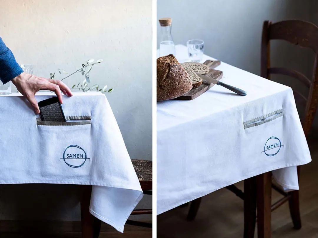 信号屏蔽桌布,使您无需使用智能手机就餐。 如今,如果没有手机,我们似乎无法运行。这种现象促使设计师拉尔夫·兰比(Ralf Lambie)创作了SAMEN:一种社交桌布,鼓励人们在进餐时忽略手机。桌布上的特殊口袋就像法拉第笼一样工作:没有消息或电话进来,也没有振动或发光的屏幕。无需在Google上快速谷歌搜索或共享餐点照片,而只关注晚餐伙伴。