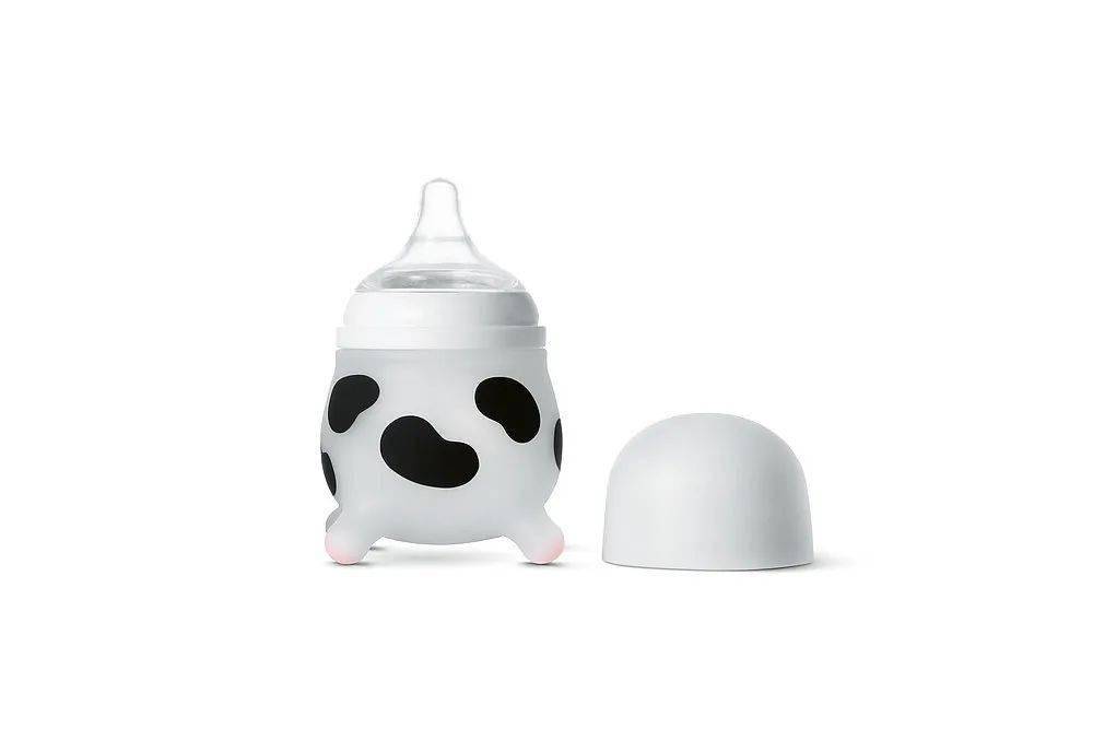 奶牛形状的Moobo婴儿奶瓶由日本医用硅胶制成,经证实具有柔软性和耐热性。符合人体工程学的设计使父母更易于操作,而婴儿可以用四个类似乳房的手柄训练他的手部肌肉。放气阀可确保喂养后婴儿的肠胃气胀降低,并且确保他不会窒息。