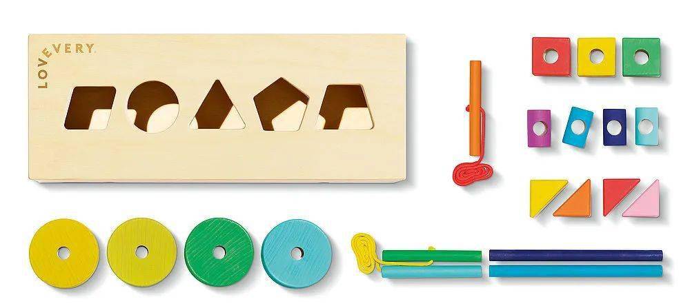 积木玩具是经典玩具的新版本。不同形状和颜色的积木均由高品质木材(一种可持续的材料)制成。该玩具共有70个部件,可为18个月以上的儿童执行各种任务。它们也可以很好地用于免费游戏中,并且适合于开发的每个阶段。另外,储物盒可以变成拉车。
