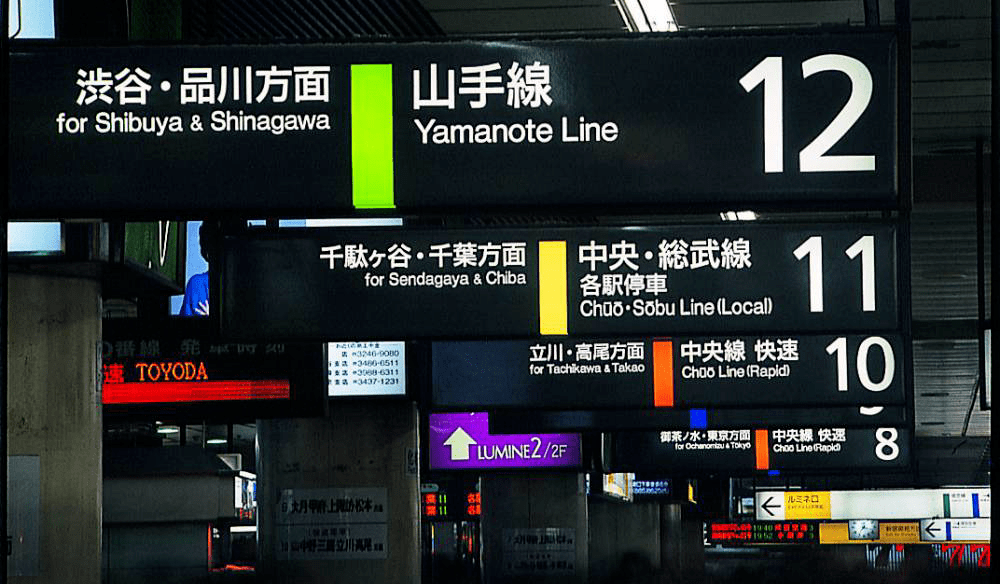 在重建视觉系统的工程上,首先挑出最複杂的新宿车站作改造范本,并锁定「提高资讯传递比例」的主要任务。经仔细调查与规划,他们分析从进站到上车之间,每一段路应如何引导帮助分流,且订出指标的统一规范:包括字型、大小、间距、编排顺序、依路线而有不同标准色等,创造整齐划一的空间印象。其中特别如黄白背景需搭配灰色文字以增加对比,或顾及弱视族群,标示图选择灰白色强化可视性等,都是从使用者角度出发的细腻设定。
