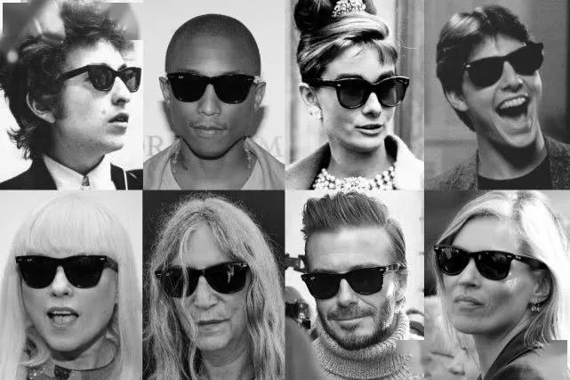从《乖仔也疯狂》(Risky Business)中的鲍勃·迪伦(Bob Dylan)、安迪·沃霍尔(Andy Warhol)、黛比·哈里(Debbie Harry)到汤姆·克鲁斯(Tom Cruise),Ray-Ban Wayfarer 太阳镜实际上已经成为美国炫酷的影子。